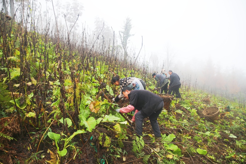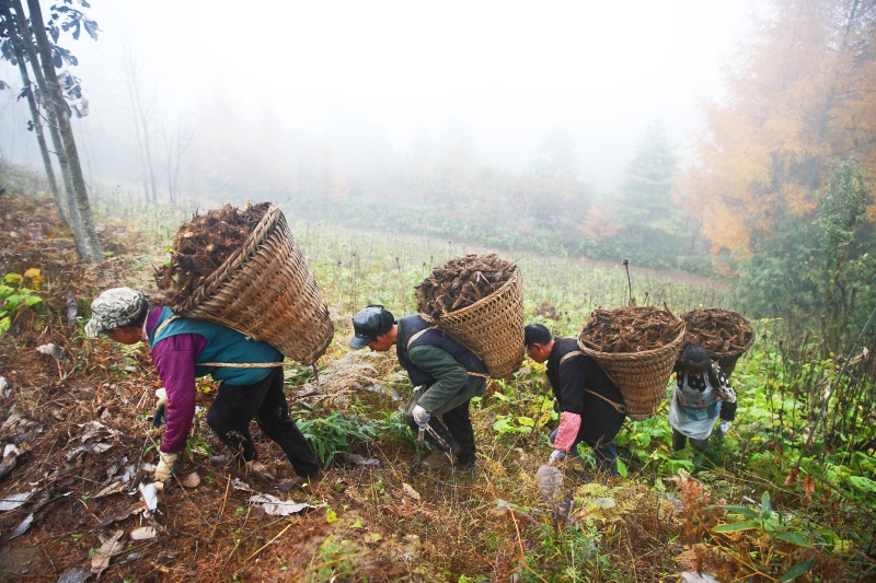 在海拔2000米的宣汉县龙泉土家族乡罗盘村万亩木香种植基地,只见村民们在田间来回穿梭,将一棵棵长势喜人的木香从土里翻出、分拣、装袋……田间地头呈现出一派繁忙的丰收景象。