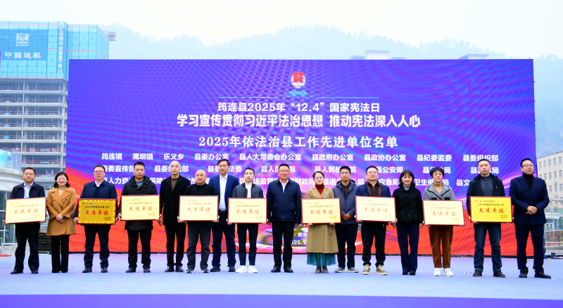 除节目表演外,活动上还进行了宪法宣誓仪式,为筠连县2025年依法治县工作先进单位颁发奖牌,激励全县各级各部门以先进为榜样,持续深化依法治县实践,推动法治建设与经济社会发展深度融合。