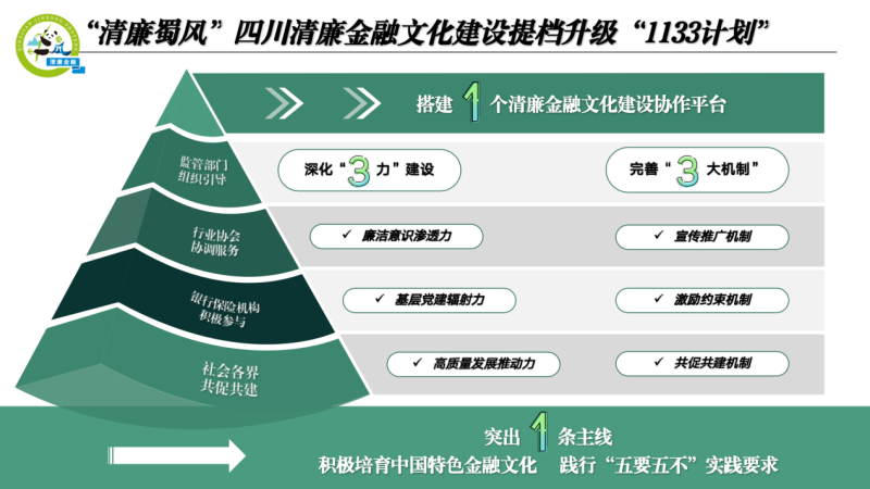 四川金融监管局党委委员、纪委书记杨波在总结讲话中指出,2025年“清廉蜀风”四川清廉金融文化建设紧扣“出台一个《指导意见》、深化一个品牌建设、发布一套IP形象、助力一个教育联盟”,亮点纷呈、硕果累累。要求辖内金融监管部门、银行保险机构、行业协会深入学习贯彻党的二十届四中全会精神,深刻认识金融与文化相互伴随、相互促进的辩证关系,深刻把握中国特色金融文化“五要五不”实践要求的精神内涵与核心要义,有效发挥清廉金融文化在一体推进“三不腐”中的基础性作用,持之以恒全面从严治党,深入实施“清廉蜀风”四川清廉金融文化建设提档升级“1133计划”,搭建“监管部门组织引导、行业协会协调服务、银行保险机构积极参与、社会各界共促共建”的清廉金融文化建设协作平台,助力四川银行业保险业为谱写中国式现代化四川新篇章提供更为有力的金融支撑!