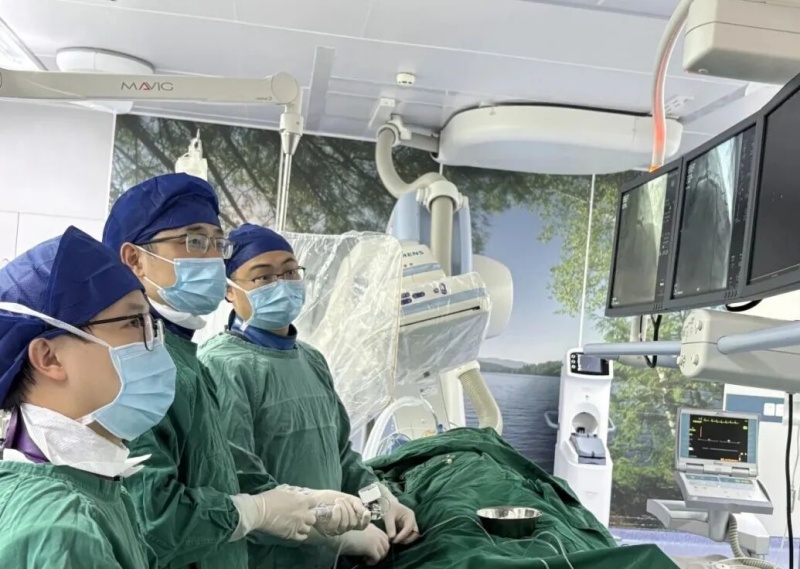 心血管内科一病区副主任黄刚介绍:“经多学科诊疗团队(MDT)深入讨论,我们评估认为实施心脏外科冠脉搭桥手术风险过大,术中易发生脑梗死及多器官功能衰竭。因此,团队决定为患者施行冠脉介入手术,以微创方式开通血管。”