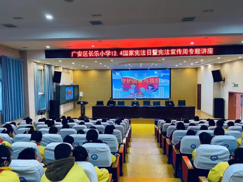 在第十二个国家宪法日暨宪法宣传周来临之际,为了进一步增强学生的法律意识,自觉遵纪守法,学会利用法律进行自我保护,做一个学法、知法、守法、用法的小学生, 2025年12月4日上午,广安区长乐小学举办了一场生动的法治教育专题讲座。