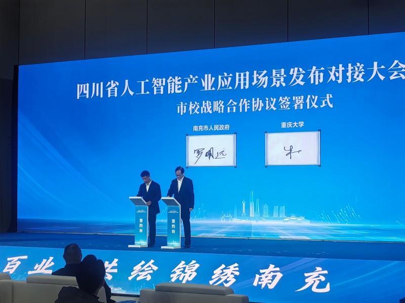 大会现场还集中签约了包括四川天府银行与中科九微科技股份公司授信合作等4个投融资项目、协议融资11.99亿元,南充临江建设发展集团有限责任公司与深圳市招商三新资本管理有限责任公司签订人工智能产业创新项目等10个招商引资项目、协议投资30.5亿元;南充市还分别和重庆大学、重庆邮电大学签订市校战略合作协议,将充分发挥大学科研创新与人才智力优势,推动科技成果转化与产业升级,助力南充加快建成省域经济副中心。同时,现场正式揭牌电子科技大学南充人工智能新质生产力创新中心。该中心依托“政产学研用”一体化体制机制,将共建高能级创新平台,赋能南充人工智能产业提质增效,为区域创新注入新动能。随着这批项目的落地,将进一步拓展人工智能应用广度与深度,加速标志性产品与新质生产力涌现。
