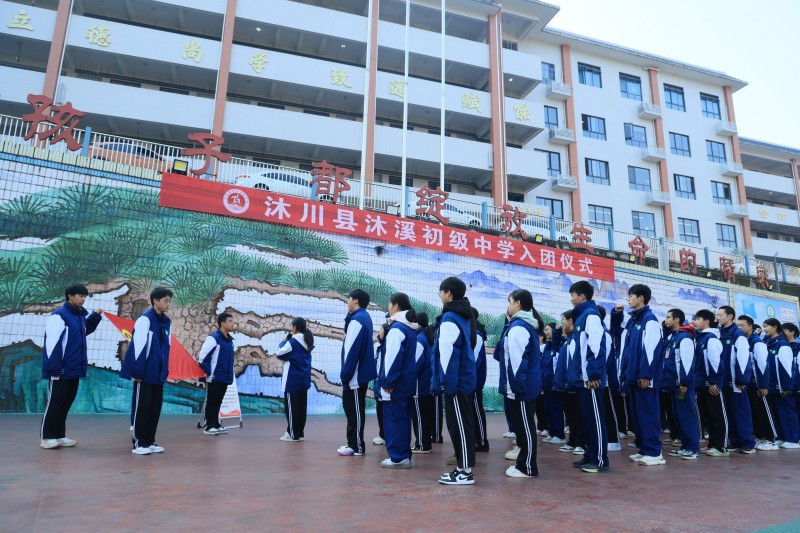 12月5日上午,沐川县沐溪初级中学举行新团员入团仪式,师生们齐聚操场共同见证新一批青年学子加入中国共产主义青年团的重要时刻。
