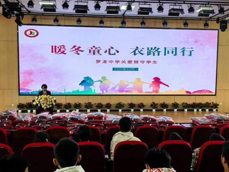 寒冬将至,暖意先行。为切实解决留守儿童、困境儿童的冬季保暖需求,传递学校大家庭的关怀,营造和谐友爱的校园氛围,宜宾三江新区罗龙初级中学校于12月5日开展了“暖冬童心,衣路同行”关爱留守儿童送冬衣主题活动。活动不仅为孩子们送去了冬日的温暖,更通过爱心传递与情感互动,播下感恩与希望的种子,让每一位留守儿童都感受到被牵挂、被珍视的幸福感。