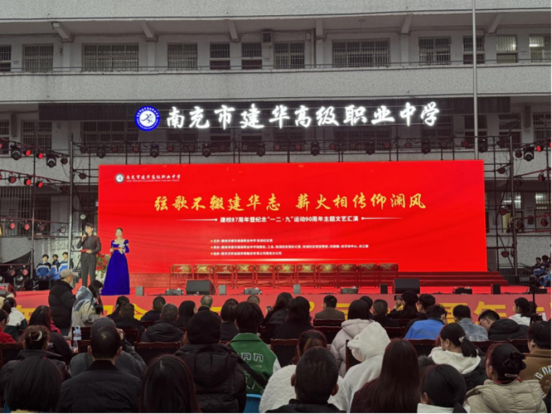 12月5日晚,张澜纪念馆与南充市建华高级职业中学联合主办的“弦歌不辍建华志·薪火相传仰澜风”南充市建华高级职业中学建校87周年暨纪念“一二·九”运动90周年主题文艺汇演圆满举行。建华职中党委副书记(主持党组织工作)罗裕胜、校长黄小虎,张澜纪念馆馆长李勇、党支部书记向可明、副馆长秦茂捷、工会主席王磊及新华文轩出版传媒股份有限公司南充市分公司总经理尤漓春等领导出席,师生与家长齐聚一堂,以文艺形式传承红色基因、深化爱国主义教育。