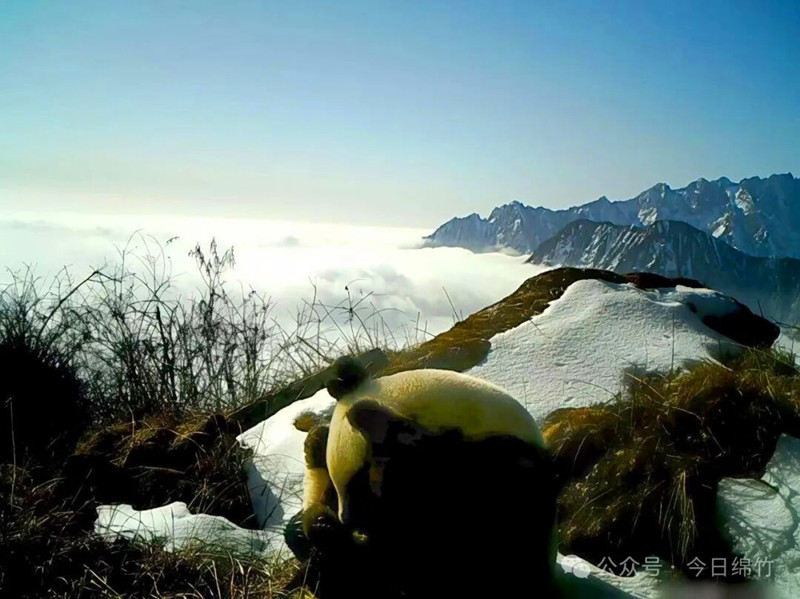 镜头前,一只雌性大熊猫怀抱幼崽,在红外相机前安然小憩。片刻休整后,它小心翼翼地将幼崽衔在口中,缓步前行,最终身影渐隐,消失在九顶山翻涌的云海之间。这温馨又充满野趣的一幕,正是大熊猫妈妈在野外环境中守护幼崽的本能流露,更彰显出生命传承的智慧。