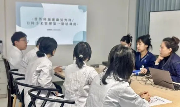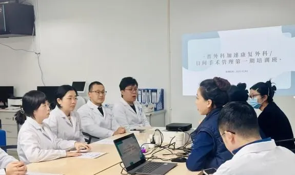 培训采用“理论聚焦+实战沉浸”模式,精准直击ERAS与日间手术临床关键环节。参训团队深入手术室观摩了ERAS理念融合下的微创手术,掌握减少手术应激的实操要点;参与专科带教查房,学习术后疼痛评估、营养支持等围手术期精细化管理方案;护理团队专项研习ERAS路径下的规范化护理技能;双方还针对基层医院特点,研讨了ERAS路径本土化适配方案,为技术落地基层理清思路。
