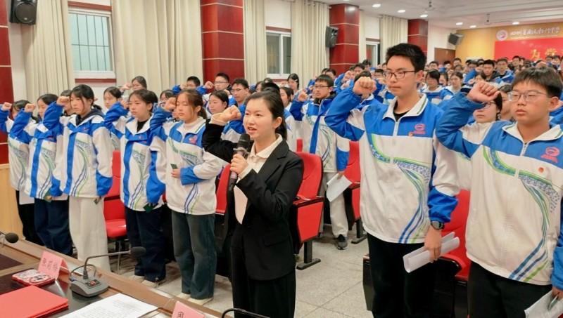 2025年秋季新团员入团仪式将系列纪念活动推向高潮。工会主席万彩霞宣读了新团员名单,校领导为新团员们颁发团章、团员证,并为他们佩戴上光荣的团徽。全体新团员面向团旗许下“为共产主义事业而奋斗”的铮铮誓言。