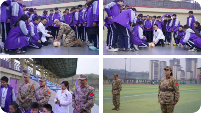 为推动国防教育与生命安全教育深度融合,南充高中将战场救援实训纳入国防教育课程体系,特邀北京安贞医院南充医院急诊医学科主任黄文炼现场授课,为学子带来一堂兼具专业性与实操性的国防教育“升级版”课程。