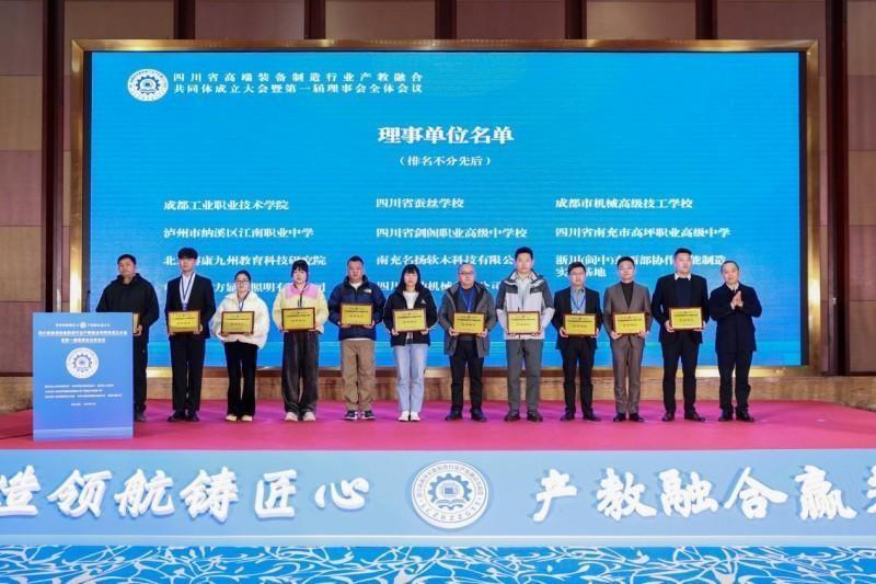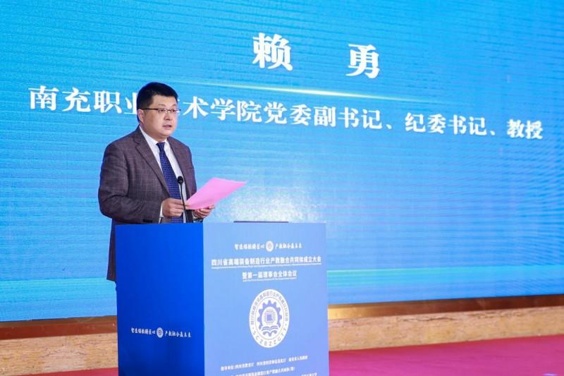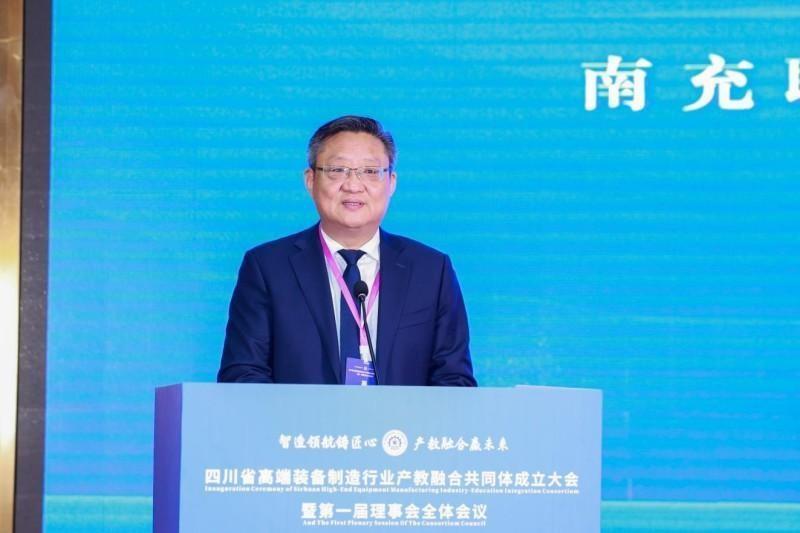 致辞中,黎明介绍了南充职业技术学院历史和基本校情、办学成效。他指出,学校是四川省省级示范校、省级优质校、首批省“三全育人”综合改革试点学校、国家级高技能人才培训基地、国家级生产性实训基地,现有9个二级学院50个招生专业,有国家重点专业2个、骨干专业1个,省级示范专业4个,国家、省精品在线课程10门。学校有教职工748人、硕博士365人(其中博士23人)、高级职称教师199人(其中正高职称50人)。教师中,有享受国务院政府特殊津贴专家、黄炎培职业教育奖杰出教师、省“四有好老师”“最美教师”等高层次人才20余人。近两届,共获得省政府教学成果奖7项(其中,特等奖、一等奖各1项);连续两届,获得全国大学生艺术节一等奖。在办学过程中,学校兴学育才、硕果满枝;步履铿锵、求索图强,正奋力建设四川省“双高”学校。黎明表示,高端装备制造业作为加快发展新质生产力、建设现代化产业体系的重要支撑,前景广阔、大有可为。此次联合101家学校、企业和科研院所成立“四川省高端装备制造行业产教融合共同体”,是破局开新、赋能未来的举措。作为发起单位之一,学校将全力当好组织员、联络员、服务员:凝聚共识、协力共进,发挥纽带作用,打破资源壁垒,打造充满活力、开放包容、互惠共赢的合作平台;深度融合、协同创新,整合产教资源,构建对接机制,联合人才培养与技术攻关,形成自我造血、可持续发展的良好生态;转化成果、服务发展,深度融入成渝地区双城经济圈与省域经济副中心建设,通过技术辐射、人才输出、标准引领,助推区域经济高质量发展。