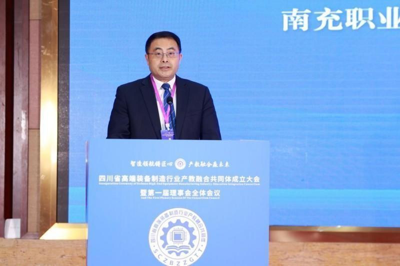讲话中,岳剑介绍了南充历史底蕴、教育资源、战略定位及高端装备制造产业发展基本情况。岳剑指出,目前新一轮科技革命和产业变革正加速演进,大数据、人工智能、区块链等信息技术与制造业深度融合,南充正由制造大国向制造强国迈进,高端装备制造已成为制造业向高端化、智能化转型的核心引擎。而职业教育,正好为推动产业升级、培育新质生产力提供了重要人才和技术支撑。组建行业产教融合共同体,实施产教融合、校企合作,是高端装备制造业发展的关键路径,也是现代职业教育改革发展的内在要求,更是服务经济高质量发展的战略选择。南充是国家战略腹地建设、新时代西部大开发、成渝地区双城经济圈建设等重大战略交汇地,现有高端装备制造规上工业企业100余家,涵盖真空装备、半导体设备零部件、能源装备等细分领域;拥有国家高新技术企业22户,国家级专精特新“小巨人”企业2户,是国内先进真空装备集聚地。近年来,各类学校紧扣川渝高端装备制造需求,在师资招引、专业设置、校企合作等方面为共同体的发展筑牢协同根基、注入持久动能。年均向社会输送各类技能人才7000余人,毕业生主要进入吉利、蔚来、中科九微、比亚迪等知名企业,就业率98%、用人单位满意度98%,实现了教育链、人才链与产业链、创新链有机衔接。就目前形势看,高端装备制造作为两大成长型产业之一,发展势头强劲。南充市正按照市委“1558”工作思路,深入实施“工业立市”战略,全力构建“3+2+3”现代化产业体系,加快建设成渝地区双城经济圈先进制造业集聚区,加快建成省域经济副中心、奋力谱写现代化南充建设新篇章。