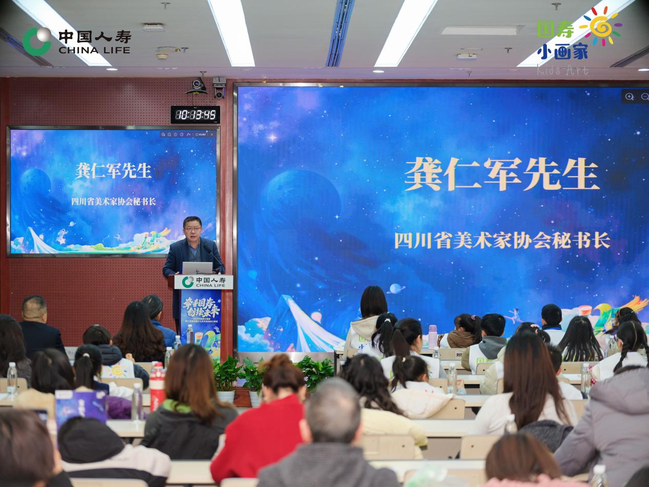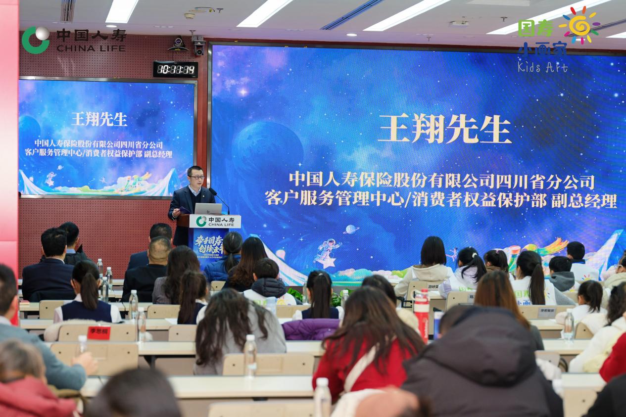 活动当天,四川省美术家协会秘书长龚仁军,四川省美协少儿美术教育艺术委会副主任张剑,中国人寿保险股份有限公司四川省分公司党委委员、总经理助理王亨,客户服务管理中心/消费者权益保护部副总经理王翔、潘显红等嘉宾出席盛典。