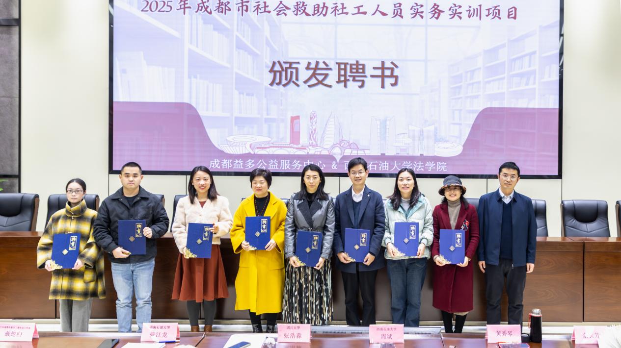 为深入贯彻落实国家关于加强分层分类社会救助工作的决策部署,加快推进我市社会救助领域社会工作专业人才队伍建设,由中共成都市委社会工作部的支持,由成都益多公益服务中心与西南石油大学法学院联合承办的“2025年成都市社会救助社工人员实务实训项目”开班仪式暨首次理论培训,于2025年12月13日9:30在成都高新区肖家河街道会议室顺利举行。