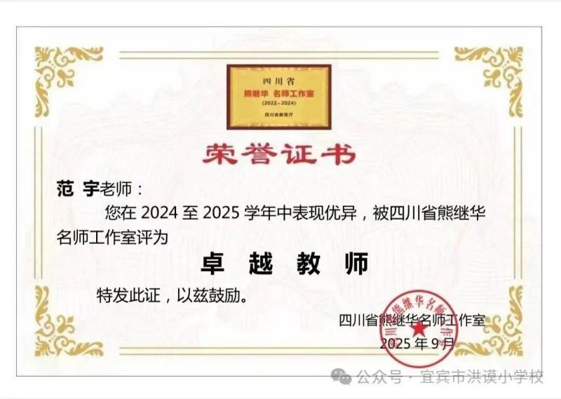 以教育家精神铸魂 谱写教书育人华章——记宜宾市洪谟小学校教师范宇