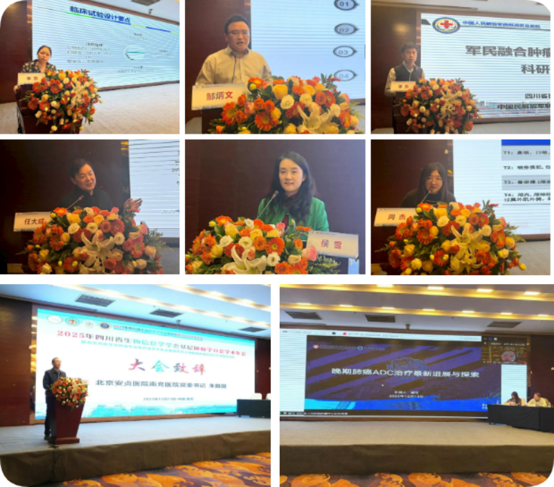 会议聚焦基层肿瘤诊疗能力提升与小细胞肺癌规范化治疗前沿,中山大学肿瘤防治中心侯雪、李苏教授,四川大学华西医院邹炳文、张双教授,四川省人民医院谢可教授,西部战区总医院李东教授,四川省肿瘤医院周杰、周进教授,成都市第五人民医院何朗教授,北京安贞医院南充医院任大成、别俊、陈艳、陈思林、杨蜜教授等肿瘤领域专家分别就《EGFR突变晚期非小细胞肺癌2025国际会议前沿进展》《IIT临床研究的选题与设计》《基于3D生物打印肿瘤类器官模型的构建及中药单体逆转耐药的筛选验证》《食管癌治疗进展》《晚期肺癌ADC治疗最新进展和展望》《中医药治癌浅识》《军民融合学科建设和转化科研经验浅谈》《老年晚期肺癌患者免疫治疗的思考》《免疫治疗相关不良反应管理》《广泛期小细胞肺癌诊疗进展》《EGFR突变阳性晚期NSCLC脑转移优化策略》《2025胃癌免疫治疗新进展》《鼻咽癌诊疗前沿探索》《NSCLC围术期免疫治疗临床热点问题与共识》等系列内容进行了学术讲座。
