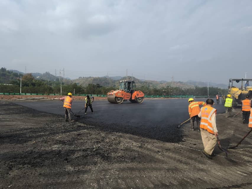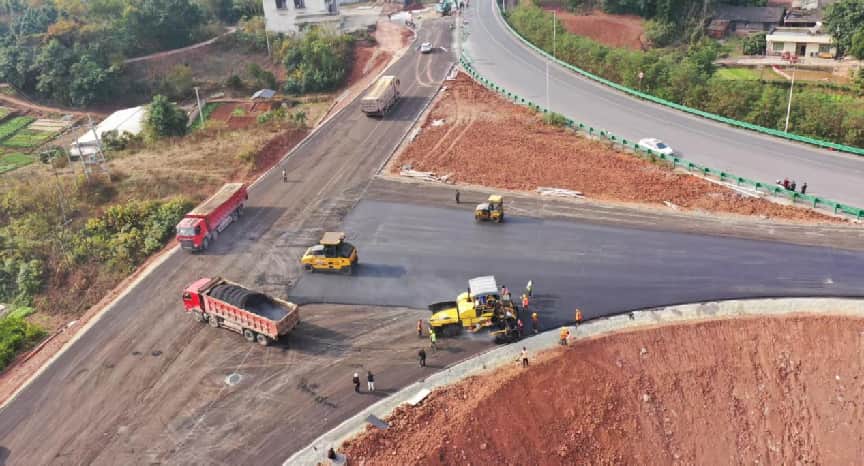 近日,高县来复镇宜彝高速—宜庆路连接线建设现场一片忙碌,沥青路面铺设工作正全速推进。随着压路机来回穿梭,乌黑油亮的崭新路面不断向前延伸,标志着这条备受期盼的致富路、民心路已进入通车前最后的冲刺阶段。