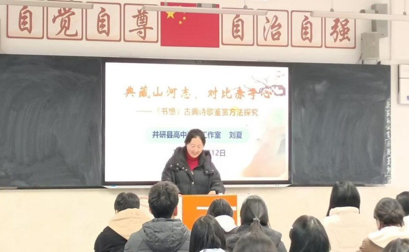 井研县语文名师工作室成员、马踏中学刘夏老师执教《典藏山河志,对比赤子心——〈书愤〉古典诗歌鉴赏方法探究》示范课,从情感、载体、策略三维度深度解读文本,聚焦高效课堂建构策略,授课逻辑清晰、指导性强,为古典诗歌教学提供优质范例。