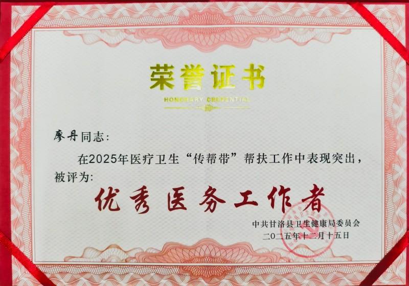 廖丹被甘洛县卫生健康委评为优秀医务工作者