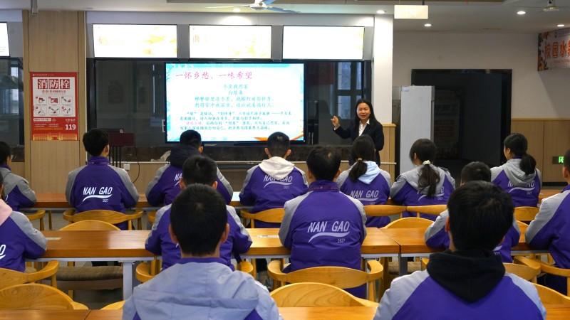 随后,语文学科老师粟杨莉以“冬至的‘情暖’与‘理深’”为主题,通过诵读解析白居易《冬至夜思家》与杜甫《小至》等诗词节选,带领学生体味诗句中蕴含的亲情与温情,解读“冬至阳生春又来”承载的自然哲理,让学生在品读思辨中提升文化审美与语言表达能力。
