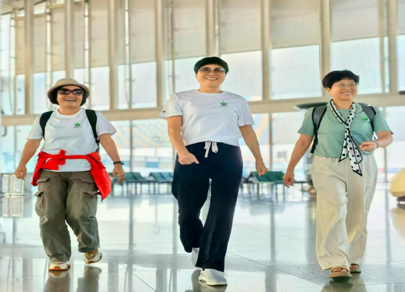 图为张沐珍、陈玉莲、施建英三位老师来四川支教时在机场留影