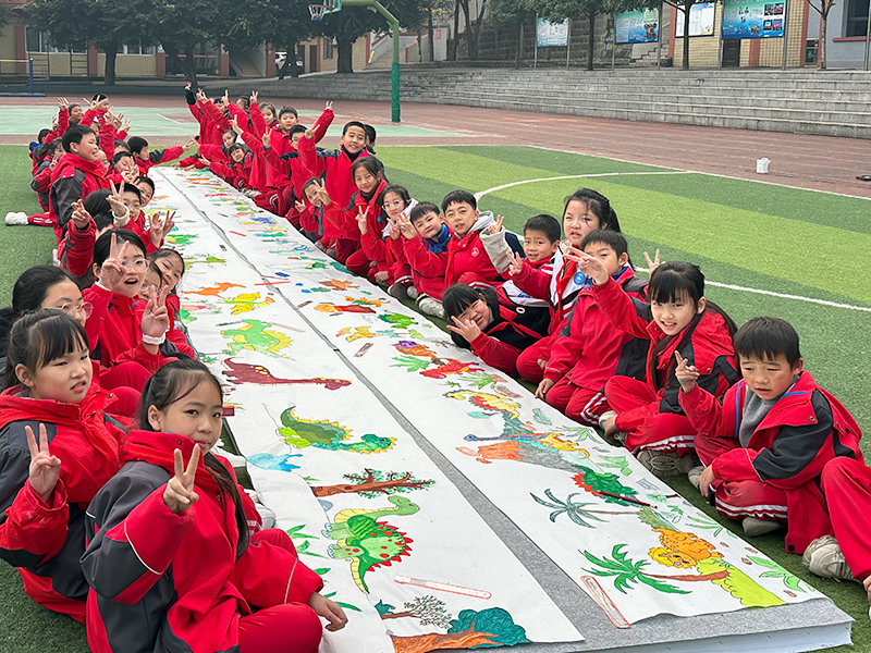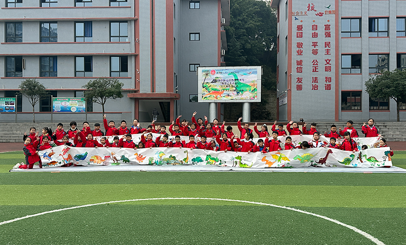 自贡市大安区小学校开展“科学艺术共创”万人画恐龙活动