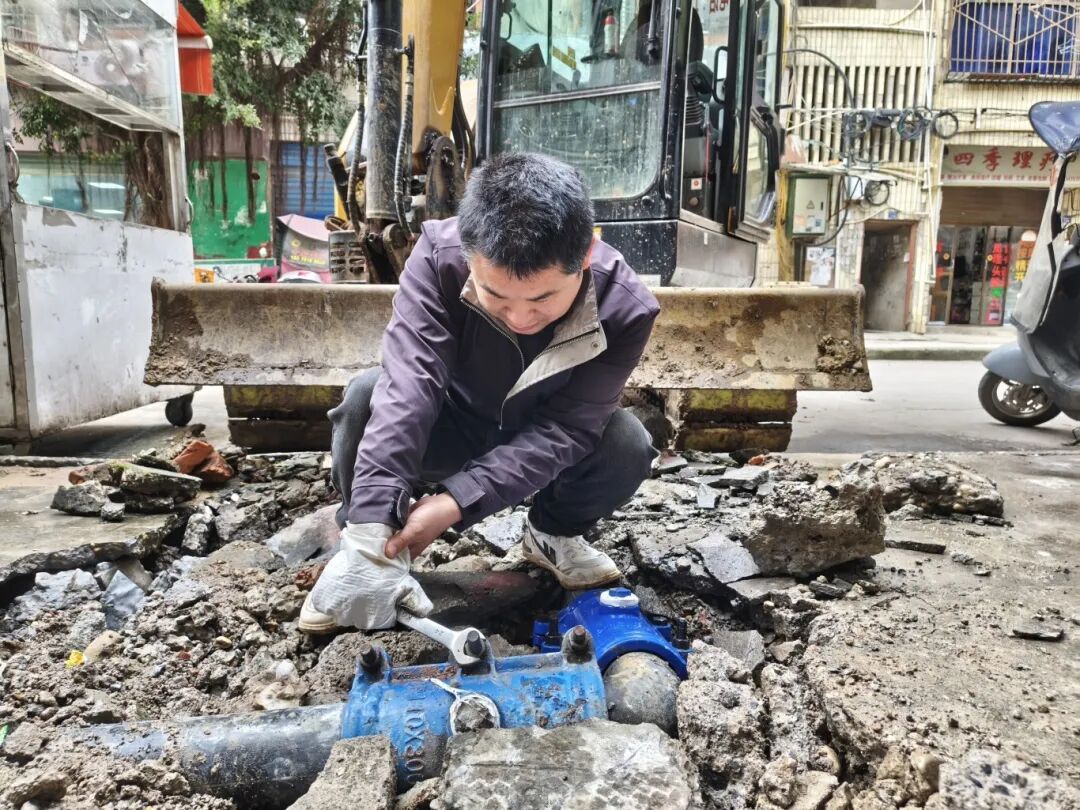 按照“即查即修、优先保障”的工作原则,排查小队分工协作、高效推进,对漏点第一时间标记定位、分析研判,并根据实际情况采取快速修补、管道拼接或整体更换等针对性措施。在高坪小龙片区,重点排查沿街商铺、居民小区周边管网,发现地下管线暗漏后随即开挖,更换破损管段并迅速恢复路面,全程未影响居民用水;在物流大道,及时发现消防栓漏水,快速启用专用工具更换配件、紧固接口,半小时内完成止水修复。