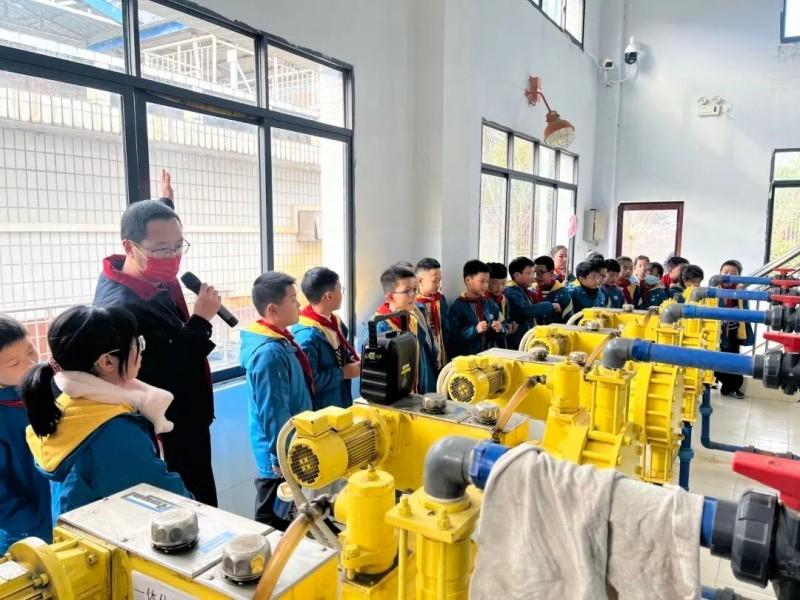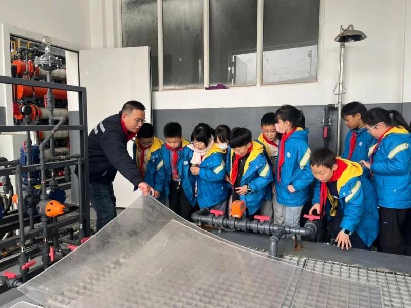 活动当天,身着校服的同学们排着整齐的队伍,在工作人员的引导下,满怀期待地踏入这座平日“不对外开放”的净水基地,“节水护水爱水”的种子也在此刻悄然播撒。沿着净水生产全流程,工作人员带领同学们依次走进配水井、预沉池、沉淀池、滤池、清水池等核心区域,通过“给杂质找朋友”“让泥沙乖乖安家”“给水做精细筛选”等生动形象的比喻,将混凝、沉淀、过滤、消毒等专业工艺讲解得通俗易懂。