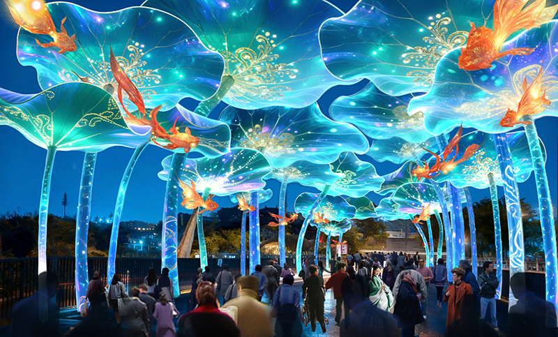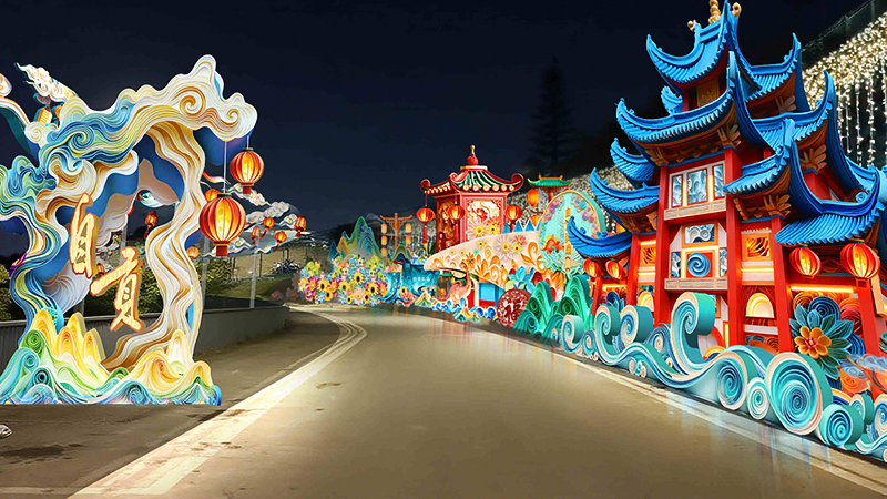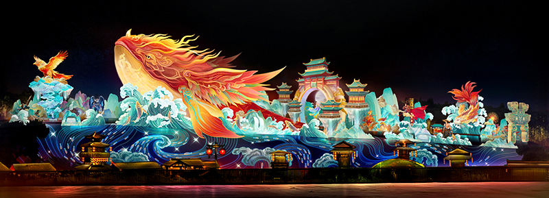 本届灯会以“灯绘华夏筑梦未来”为主题,全力打造了“中国结大道”“福禄广场”“木兰传奇”“匠心非遗”“神奇华夏”等十大板块,用11组大型灯组、200余组中小型灯组,打造了一场融合非遗技艺与前沿数字科技的沉浸式盛会,为游客带去一幅“万象共生”的艺术画卷。