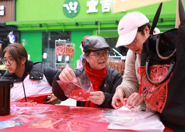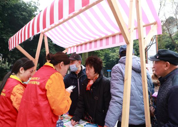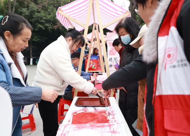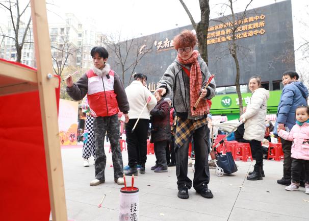 与舞台表演相得益彰的“文明雅集·暖心市集”,构建了一个开放、互动、便民的文明实践体验场域。市集精心设置了八个特色摊位,集文化传承、生活服务、知识科普于一体。“巧手纳福站”的剪纸与“古法印记站”的拓印,让居民在手作中感受传统民俗趣味;“智慧灯谜站”与“投壶纳吉站”则寓教于乐,吸引全家老少共同参与。来自国网四川电力成都市高新供电公司的“光明万家站”与成都地铁运营有限公司的“平安轨道站”,提供了专业的用电安全咨询与轨道交通文明出行知识普及,提升了居民的安全素养。“健康护航站”的免费义诊服务,体现了对居民身心健康的切实关怀;“文明风尚站”则围绕垃圾分类、文明养宠等主题开展互动问答,倡导时代新风。居民通过“集章打卡”方式穿梭于各摊位,在深度参与中完成了知识获取、技能体验与服务享受,生动实践了“文明始于心,践于行”的理念。