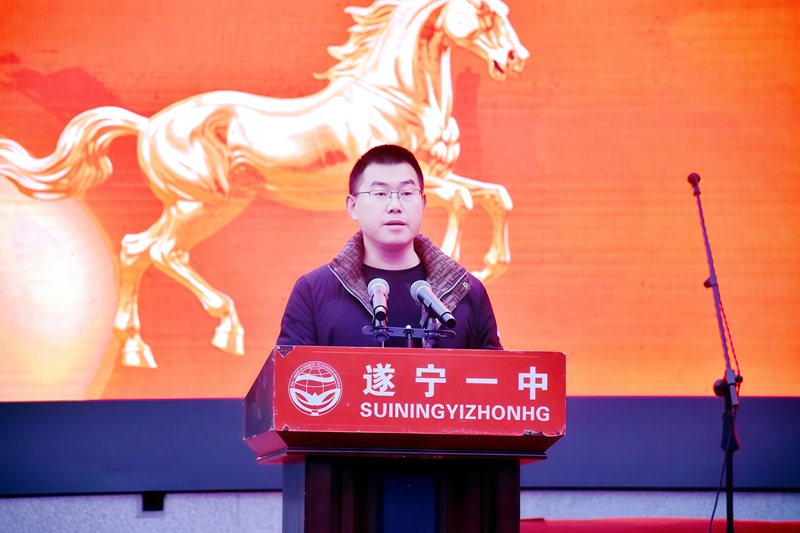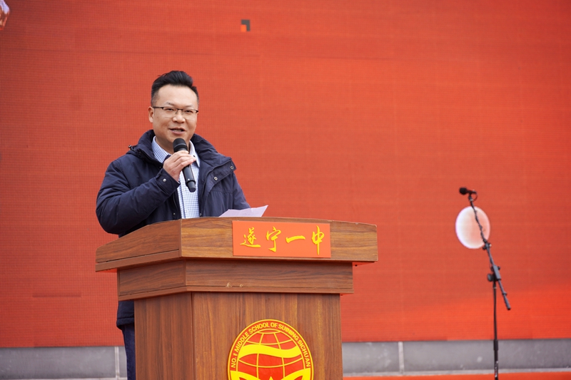 (遂宁一中德育处副主任蒋亮在书台校区就会场纪律、观赛礼仪等事项进行细致强调)