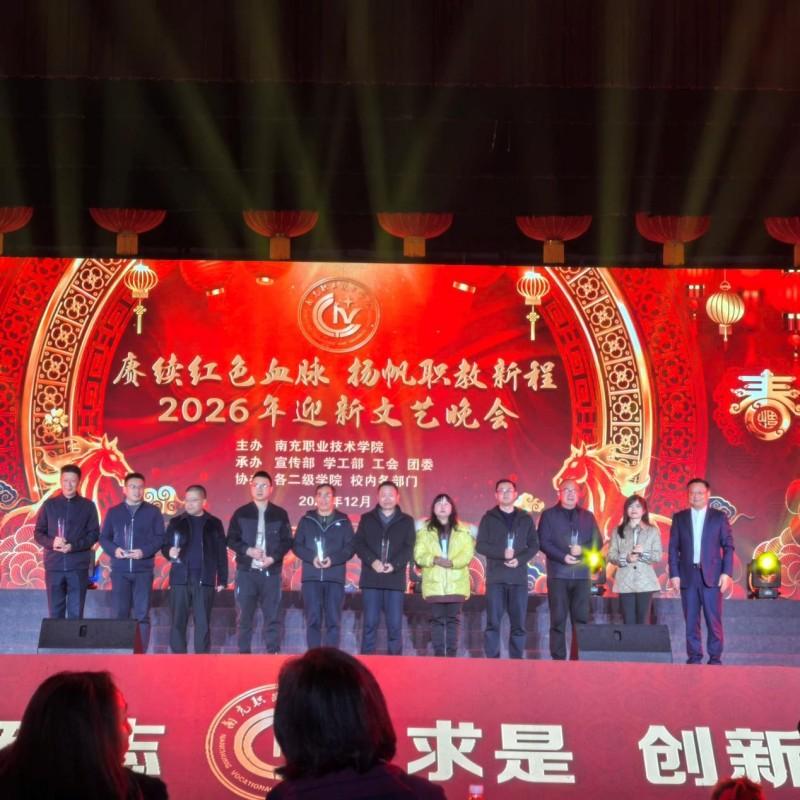 彩舞翩翩、激情飞扬。 2025年12月30日晚,四川南充职业技术学院(南职)大学生活动中心内,座无虚位、掌声欢歌。2026年迎新年文艺晚会举行。学院党委行政和老师们同学们,欢聚一堂,全面回顾总结2025年取得的成绩,进一步弘扬优良办学传统,展示办学成果。共同憧憬2026新的一年里,再铸新辉煌的美好愿景。同时,还揭晓了学校“2025年度十大新闻”获奖牵头单位。