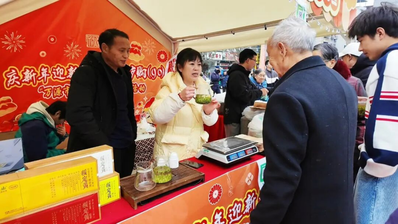 与此同时,万源“乐动街头·喜迎新年”惠民消费活动现场也人气满满、温情流动。茶叶、特色农产品、非遗糖画等商品琳琅满目,市民们一边品尝传统美食、挑选心仪特产,一边欣赏精彩演出,现场笑语声声、暖意融融。