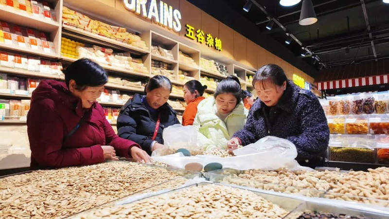 万源市爱家购物超市中心店店长王雪峰:我们提前备足了商品。元旦假期,超市的零售收入同比增长显著。同时,我们推出了满减优惠、折扣等促销活动,吸引大量市民前来选购。
