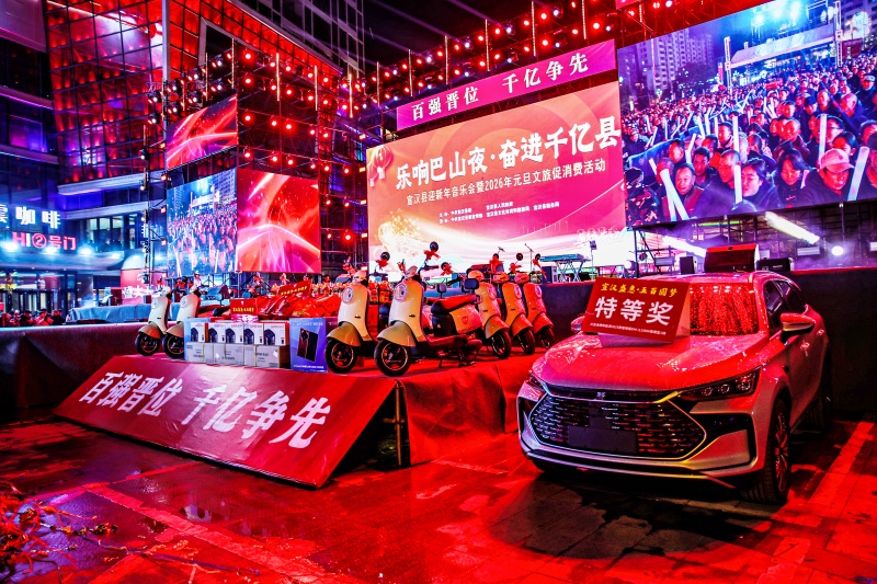 2025年12月31日晚,“乐响巴山夜·奋进千亿县”迎新年音乐会暨2026年元旦文旅促消费活动在宣汉县宏帆巴人广场举行。活动以音乐为媒介,融合经典金曲与本土特色,创新打造的“音乐+文旅+消费”融合发展新模式,为广大市民带来音乐享受的同时,全方位展现宣汉的资源禀赋、文化底蕴与城市烟火,有效激活文旅消费新动能,推动县域文旅经济提质增效,活动当晚吸引上万名观众前来观演。