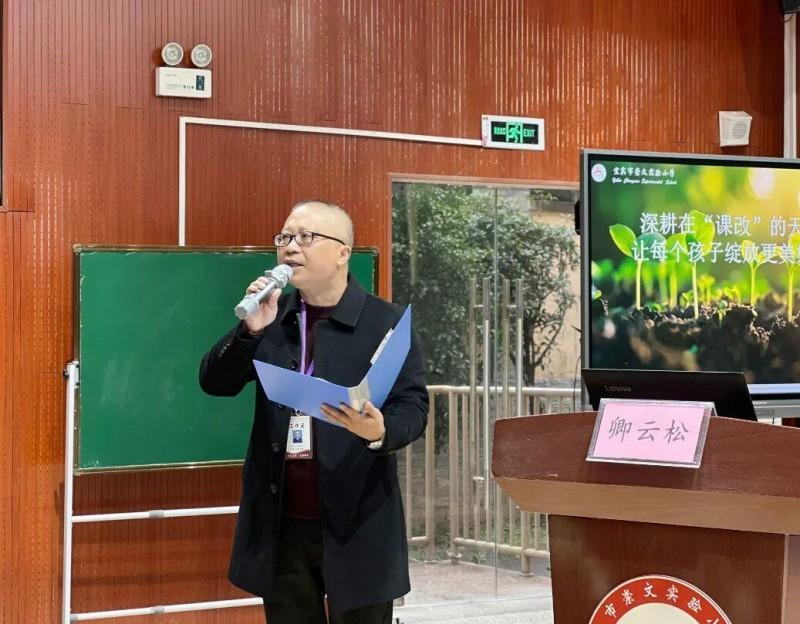 学校党支部书记、校长卿云松发表致辞,他强调:学校课改立足“让每个生命舒展生长”的初心,构建起“前导式四学”课堂生态,以生为本、因材施教,致力于为每个孩子搭建绽放生命光彩的舞台。他还提到,改革之路不乏挑战,但课堂上孩子们愈发自信的表达、从容的思考,让老师们更加坚定课改方向。他提出:诚望与各位共同探讨“立德树人”目标下的课堂转型路径、“双减”背景下学习本质的回归之道。