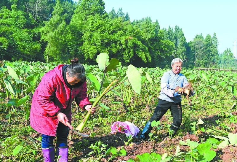 村民采收香芋。邹刚摄