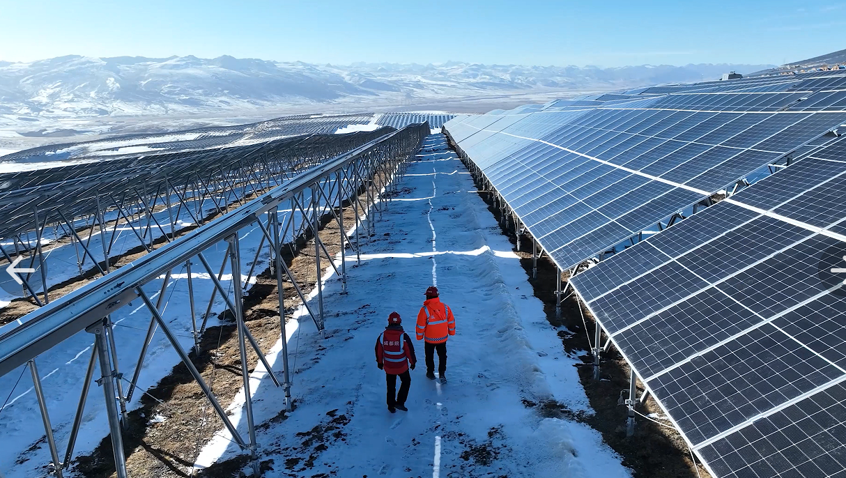 中国电建集团成都勘测设计研究院有限公司(简称“成都院”)索绒光伏设计施工总承包项目部的临时板房里,灯火通明。项目负责人周锐紧盯着屏幕上最后的数据流,对讲机里传来各子阵陆续就绪的报告声。他搓了搓冻得有些发僵的手,深吸了一口稀薄的空气,声音沉稳而有力:“各单元最后检查,准备迎接并网时刻。”窗外,无数湛蓝色的光伏板在雪后初霁的阳光下,沿着山脊起伏铺展,宛如一片静默的海洋,蓄积着巨大的能量。