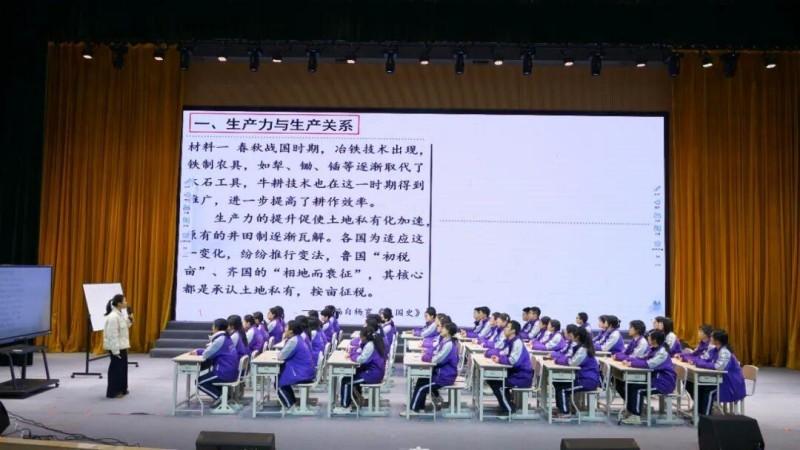 本次示范课,王钰老师以春秋战国时期的社会变革为经典案例,精准聚焦唯物史观的核心概念——生产力与生产关系、经济基础与上层建筑。她通过“铁犁牛耕”推广与“初税亩”改革、商鞅变法与百家争鸣等丰富史料,引导学生层层剖析,生动演示了如何运用唯物史观的基本原理,解释中国从奴隶制向封建制转型的深层动因与历史必然性。王钰老师将抽象的理论与鲜活的历史实证相结合,引导学生构建“史实”与“史观”之间的逻辑桥梁,为一线教师落实唯物史观教学提供了参考。