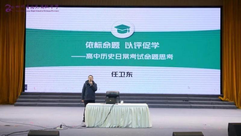 针对一线教师在命题中普遍面临的“选择题题干冗长、教考脱节、试题偏离历史学科属性、设问缺乏层次”等实际困惑,四川省教科院高中历史兼职教研员、成都市高中历史学科中心组成员、成都立格实验学校高中历史教研组组长任卫东作了题为《依标命题·以评促学——高中历史日常考试命题思考》的专题讲座。