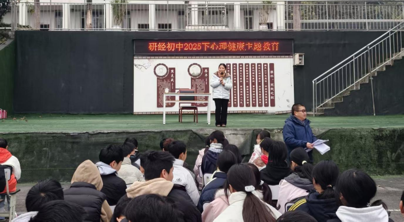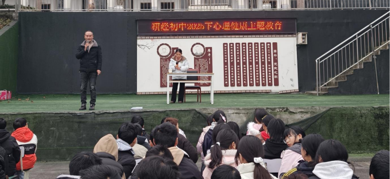 为切实关注初中生心理健康发展,帮助学生缓解学业压力、优化人际关系、提升情绪管理能力,同时搭建家校社协同育人桥梁,12月30日上午,井研县研经镇初级中学校成功举办“阳光心灵,健康成长——专家引领下的初中生心理健康赋能行动”主题活动,全体师生共同参与了这场兼具专业性与实用性的心理健康教育盛宴。