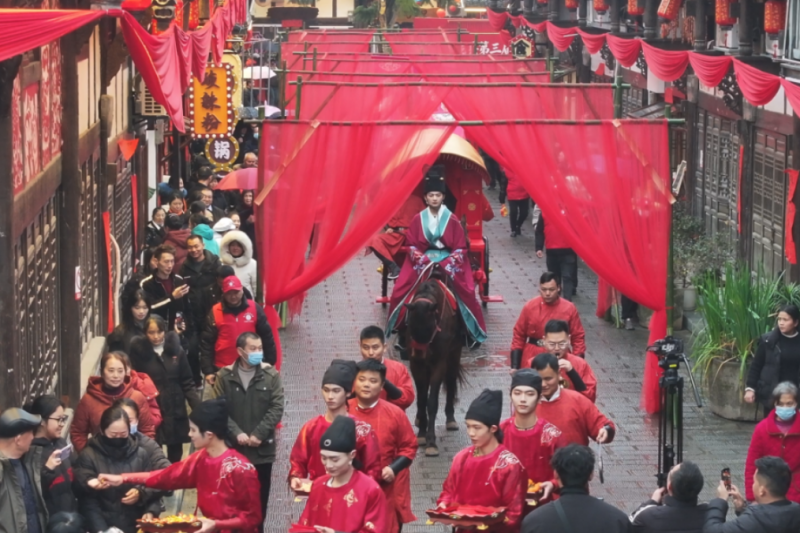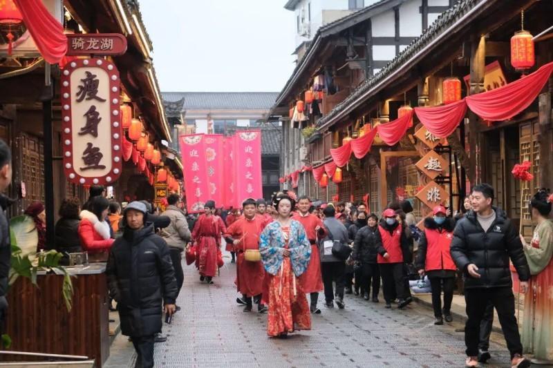 近日,由四川南充市仪陇县文广旅局、仪陇县商务局联合承办,德瑞欣旅文化传媒公司、南充农村商业银行股份有限公司仪陇支行执行的“仪陇县第三届婚恋文化艺术节”在新政老街圆满落幕。本次活动以“唐朝婚俗文化”为主题,历时三天,吸引了近万人次参与体验,成功展示了仪陇在历史文化保护与文旅创新融合方面的丰硕成果。