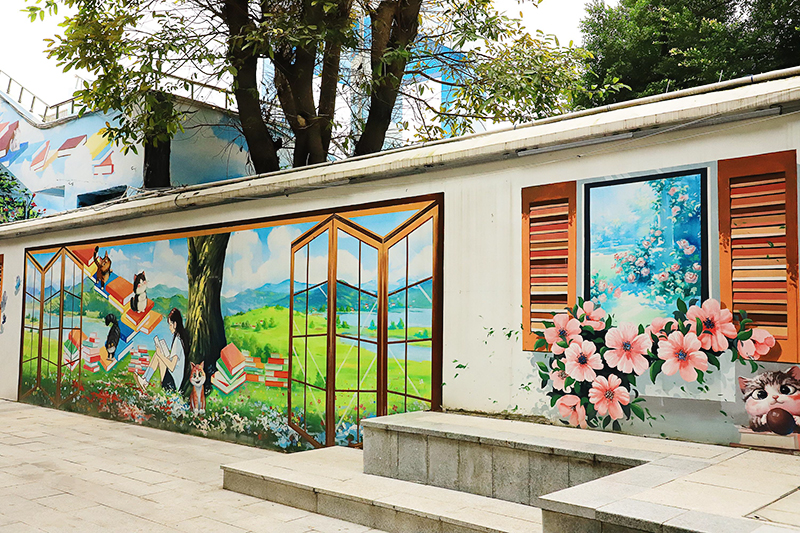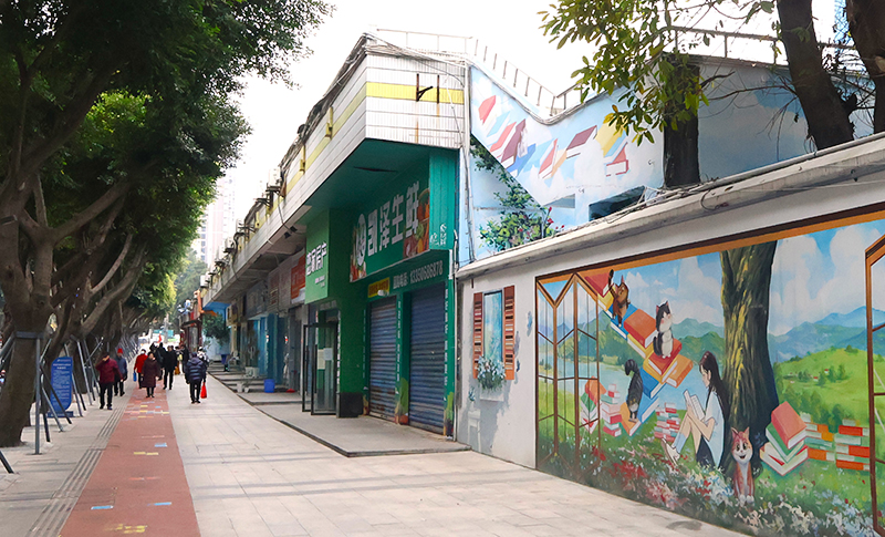 除了路面升级,街道氛围也全面提升。高新区住新局工作人员表示,此次改造邀请本地艺术家与社区居民共同参与设计,让街道在安全畅通之余更添人文温度。“冠军之路”涂鸦墙绘有高敏、刘翔等11位体育明星的运动瞬间,已成为网红打卡点;另一侧的“知识阶梯”将书本与台阶巧妙融合,寓意“知识是人类进步的阶梯”,成为家长带孩子感受文化氛围的“教育一角”。