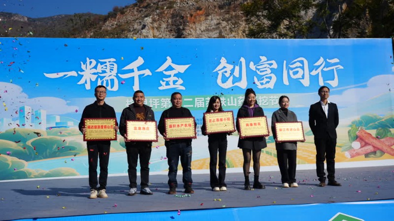开幕式现场,格里坪创富产业联盟(以下简称联盟)现场推介苏铁山药、噹噹鸡、泉水鱼等特色农产品,通过“统一品牌、统一包装、统一宣传、统一销售”的模式,破解过去零散售卖的发展瓶颈。多家餐饮企业获颁“创富产业联盟合作单位”称号,餐饮代表现场表态,将深化产销对接机制,让正宗苏铁山药通过餐桌走向更广阔的消费市场。攀枝花市第二人民医院等采购单位现场签订意向采购单,以实际行动为本土农业产业发展注入信心。现场还穿插了《欢聚一堂》《苏铁山药丰收谣》等精彩节目,为盛会增添浓浓文化氛围。