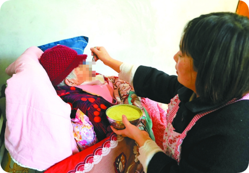 鸡还没叫鸣,四川南充市仪陇县日兴镇向家农村社区居民蓝玉良已经起床。她先给中风瘫痪的婆婆洗漱、换尿片,再烧水准备给残疾侄女洗脸。