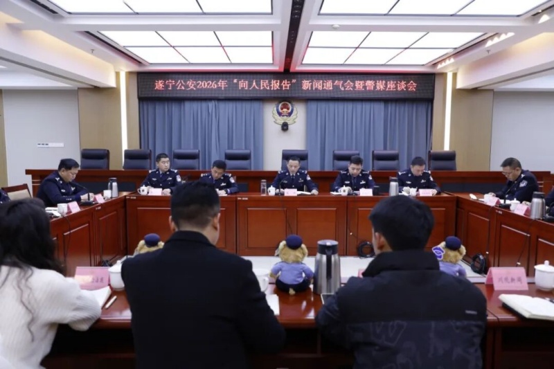 1月7日上午,四川遂宁市公安局召开“向人民报告”2026年新闻通气会暨警媒座谈会,回顾遂宁公安2025年的坚实足迹、奋斗征程。会议邀请中、省级驻遂媒体以及本地主流媒体代表参加,市公安局党委委员、政治部主任聂洪出席会议并讲话,市局情指、治安、刑侦、网安、交管、经侦、法制、环食药侦、森林公安等部门主要负责同志参加会议并通报2025年全市公安机关打击犯罪、服务群众、护航发展的有关情况。