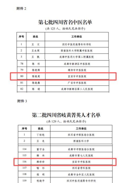 宜宾市中医医院主任中医师陈晓英当选“四川省名中医”,副主任中医师韩珍珍当选四川省岐黄菁英人才