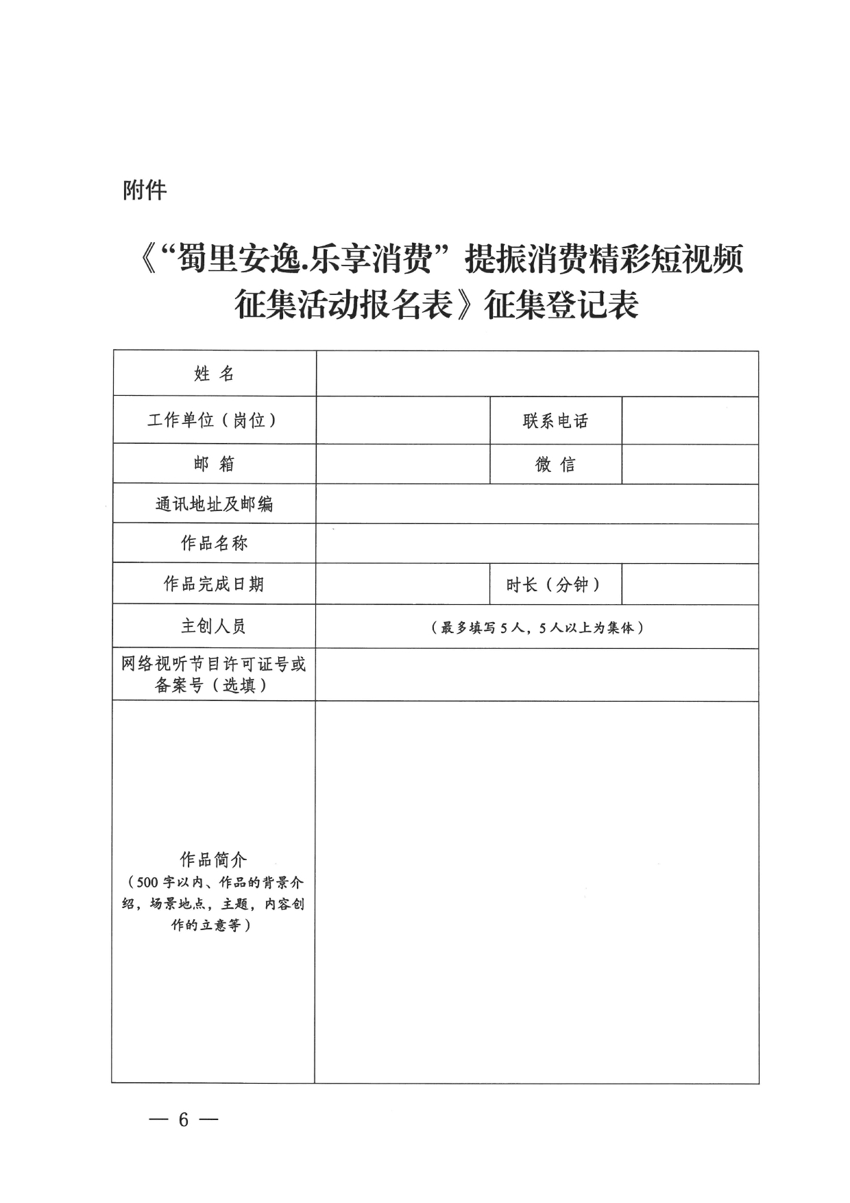 附件:《“蜀里安逸·乐享消费”提振消费精彩短视频征集活动报名表》征集登记表