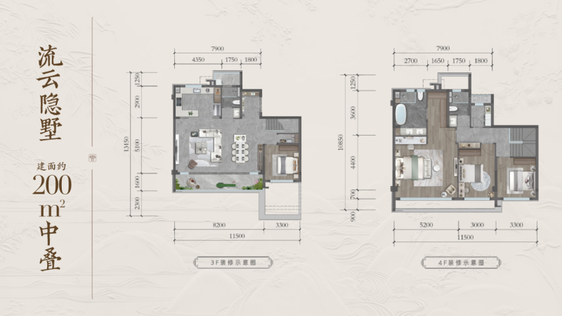 建面约200㎡的中叠产品,以“动静垂直分区”为设计精髓:家庭公共活动集中于下层,而静谧的卧室区则独立于上层,实现了家人共处与个人隐私的巧妙平衡。尤为值得一提的是,其在客厅旁匠心预留了一个多功能的“X空间”。这一灵动区域可根据家庭需求,随时变身为书房、茶室、健身角,或成为长辈的临时卧室,为多代同居提供了弹性解决方案。为追求功能完善、注重性价比,且需要为未来变化预留弹性的多代家庭,提供了一个务实而优雅的解决方案。