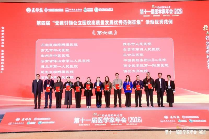 近日,由中国医药卫生文化协会、医师报社联合主办的第四届“党建引领公立医院高质量发展优秀范例征集活动”评选结果正式揭晓,川北医学院附属医院凭借党建与业务深度融合的创新实践与突出成效,成功斩获“优秀范例”荣誉称号。该荣誉在1月8日至10日于北京举办的第十一届医学家年会上正式颁发,医院获邀派员参会领取荣誉。