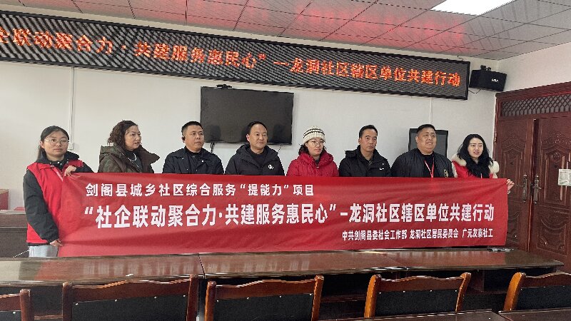 为切实回应社区居民的实际需求,打通便民服务“最后一公里”, 1月12日上午,剑阁县白龙镇龙洞社区联合白龙小学、卫生院、商超、企业各单位的代表共同开展“社企联动聚合力·共建服务惠民心”共建活动,以切实提升社区服务精准度与覆盖面,增强居民及新就业群体的获得感、幸福感与归属感。